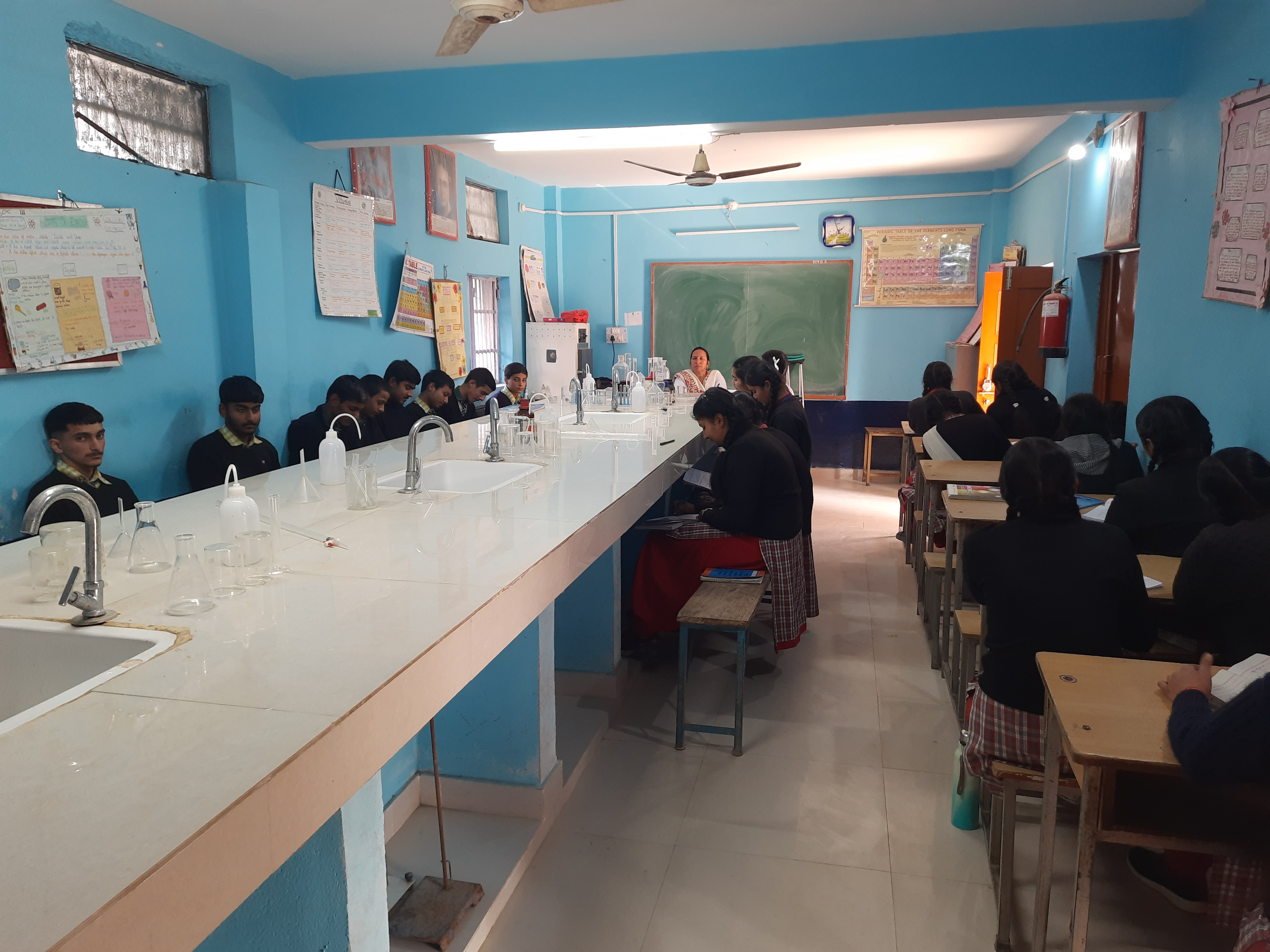 Observations and experiments make learning more interesting and fun. Biology lab is well equipped with preserved specimens, slides, models and bio visual charts which emphasize on developing scientific temper among the students. Performing experiment is an interesting task. Students enjoy it as they learn something new from the results. Students of class IX to XII are guided for practicals. Occasionally students of other classes also make use of biology lab for various activities related to general science, which help them to learn new concepts that they have always been thinking about.