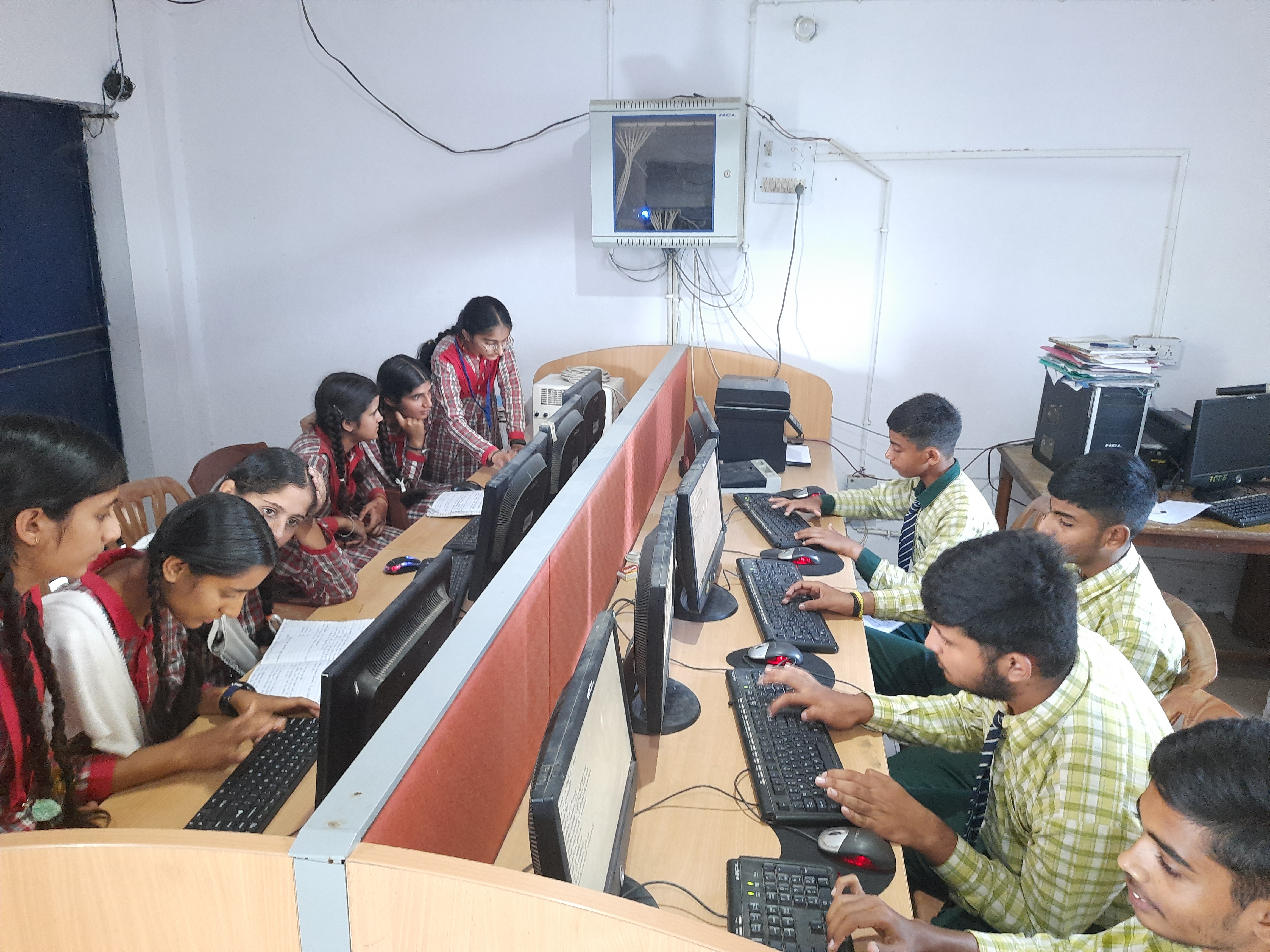 ICT classroom, have smart interactive boards along with projectors. This has broadened the scope of e-learning as it has given the teacher a tool to facilitate the students with a better content. Subject contents and study material of all subjects as per the syllabus are uploaded in collaboration with Educomp and Robomate.